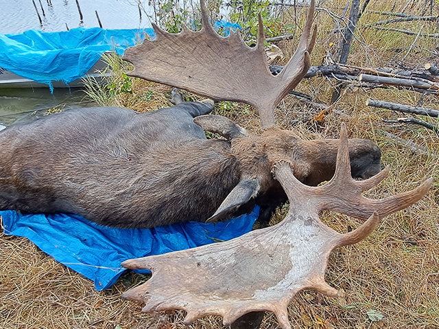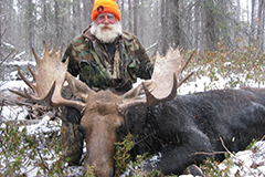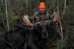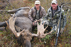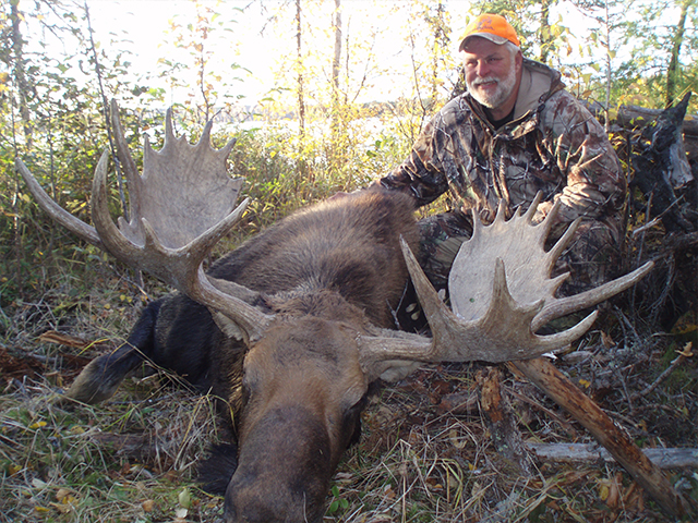 | Moose hunting is excellent at Northern Lights Lodge. This is a fly-in hunt. We have an exclusive hunt area, which is miles from any other hunters. The Moose in our area have very large racks. We continue to have a very high success rate every year. Our hunts are one guide for the hunt to one hunter. We are allotted 8 licenses per year but only do 4 hunts so we can achieve our high success rate and do not deplete our moose population in our area. John and Lori will be in camp with you during your stay to ensure a quality hunt. The trip includes the fabulous Lake Trout and Northern fishing we have at that time of the year. Your trip includes float plane flight to and from the lodge, guide for the hunt, boat, motor, gas, fantastic home cooked meals, lodging (in cabins), and flying your entire Moose out. The season begins the middle of September each year. |